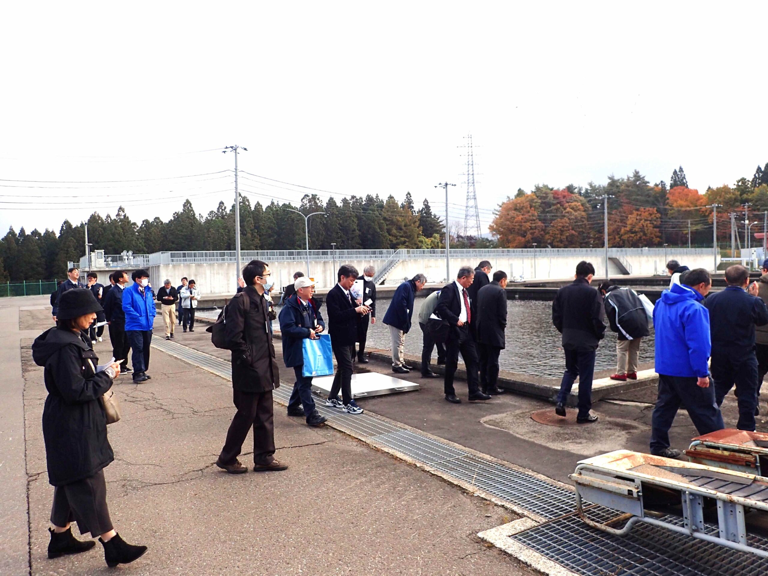 2日目は、横内浄水場の現地見学。当日は青森の冬の入り口を感じさせる寒風の中でしたが、市内から30分ほどの八甲田連峰山裾に位置する広大な浄水場にて、緩速ろ過池群を一巡しながら寒冷対策や運用状況、後処理の紫外線照射施設内も見学、㈱トーケミによる粗ろ過実験施設含め施設全体の説明を受けました。浄水後の水道水の試飲は、市内の水道水ともに確かに「おいしい」と実感する味わいでした。